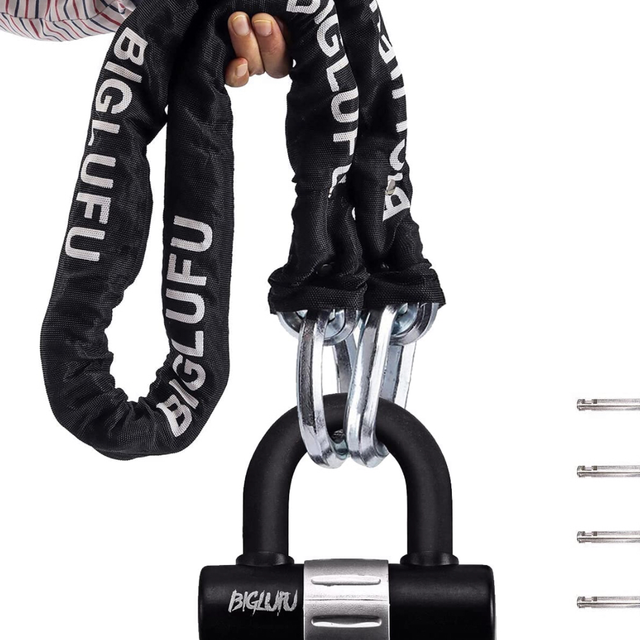 BIGLUFU Chain Lock, 12mm Steel Chain Motorcycle Lock Chain High Safety 120cm Long Bicycle Lock
