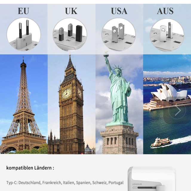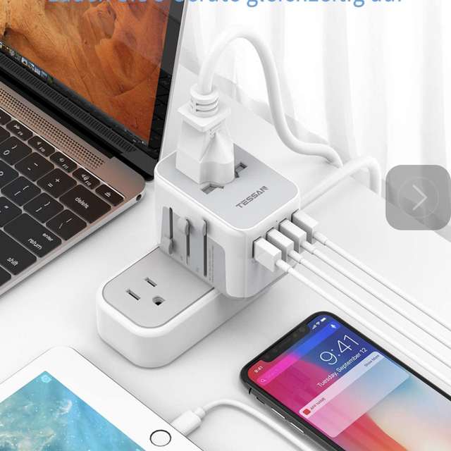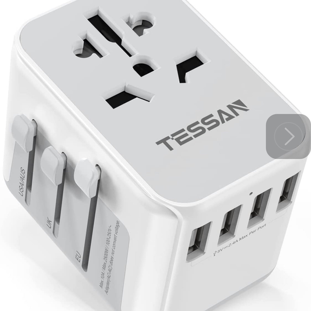 TESSAN Universal Travel Adapter: This global travel adapter has an EU/UK/AU/US plug. With this travel adapter, you can travel to many countries, such as Europe, USA, England, Germany, Asia, Thailand, Australia, China, Japan, Israel, Italy, Colombia, etc.